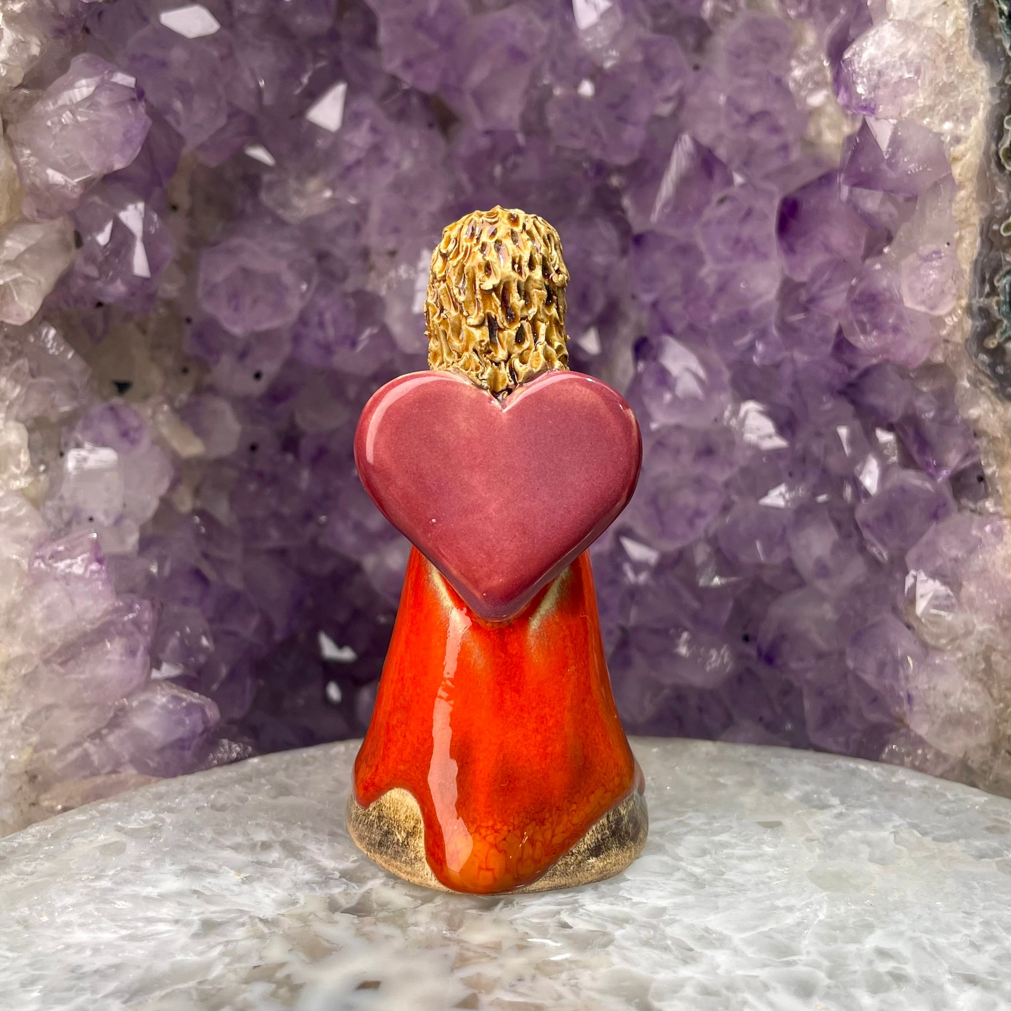 Te urocze figurki łączą w sobie delikatność ceramiki z mocą natury zaklętą w kamieniach, tworząc niezwykłą harmonię piękna i symboliki.